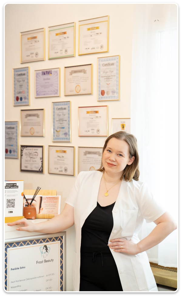 Zahnverfärbungen können das Strahlen deines Lächelns beeinträchtigen. Bei Frost Beauty helfen wir dir, dein strahlendes Lächeln zurückzugewinnen. Unser sanftes, aber effektives Bleaching-Gel hellt deine Zähne auf. Genieße das Leben voll und ganz, mit einem Lächeln, das so strahlend ist wie du.